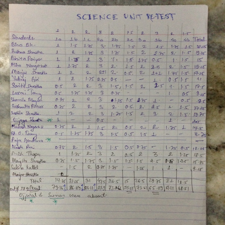 I recently asked the teachers to do unit tests with their students. We analyse the results not just by student, but by question too. That way we can see which topics/questions the students struggle with, and re-teach them. This ideas is taken from Leverage Leadership – an excellent book for anyone interested in school improvement.