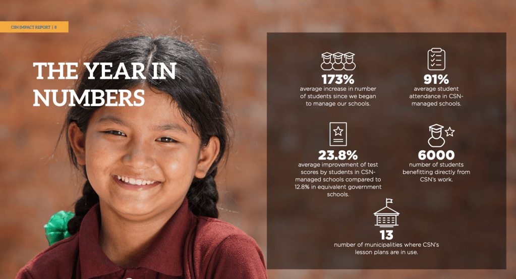 Our work is now benefitting 6000 children, and independent research indicates students in the schools we manage are progressing at twice the rate of students in equivalent government schools.